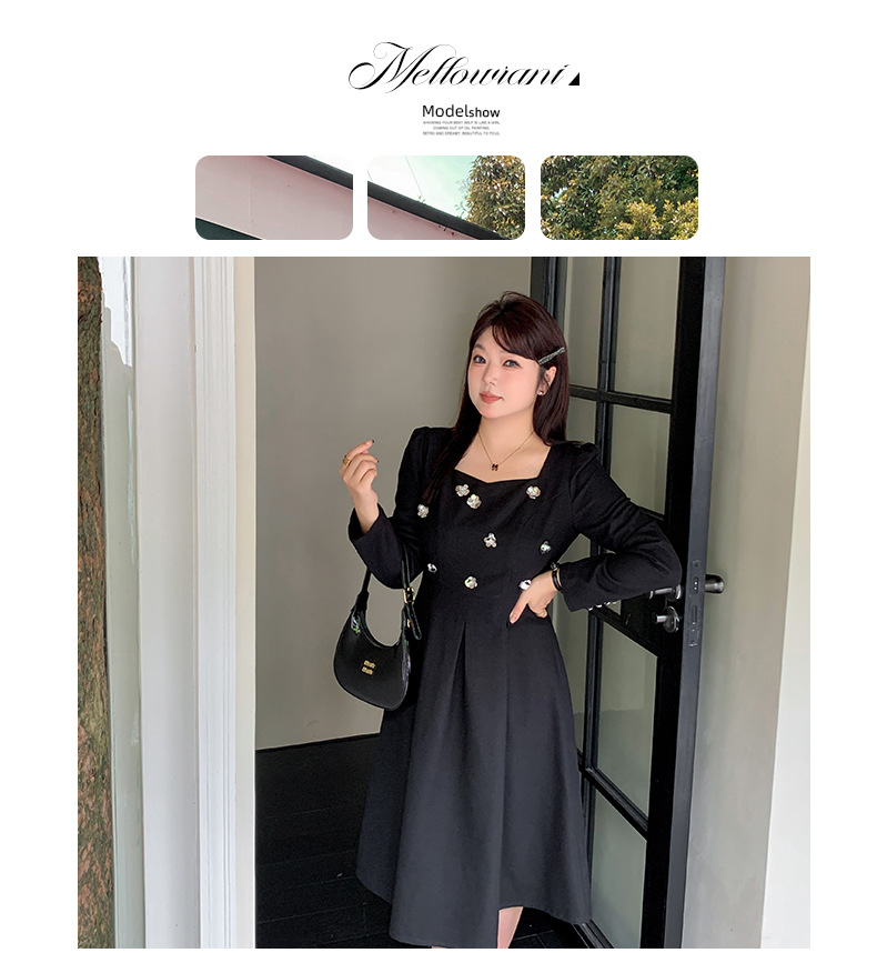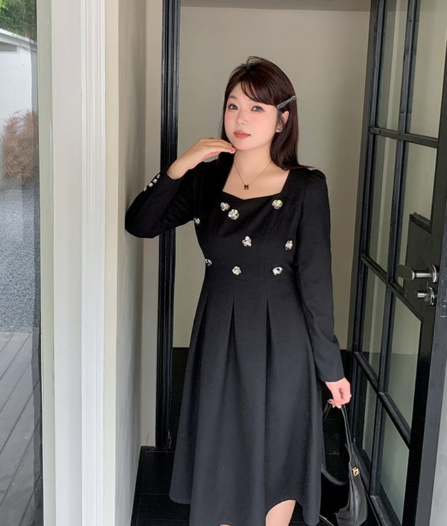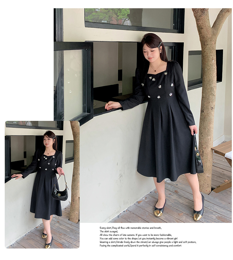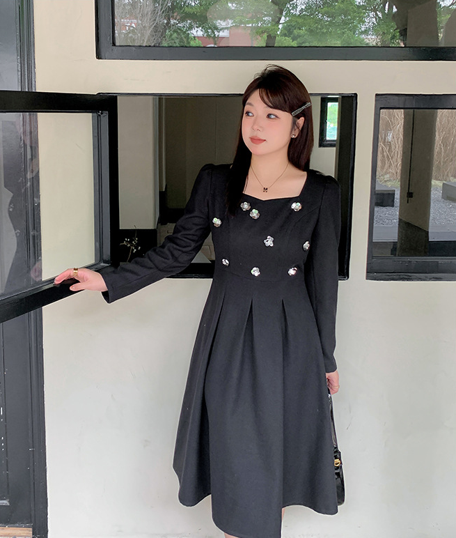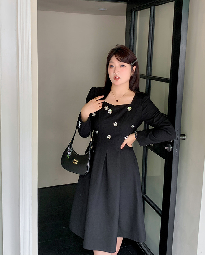 大きいサイズ レディース スパンコールスクエアネックブラックワンピース LL 3L 4L 5L