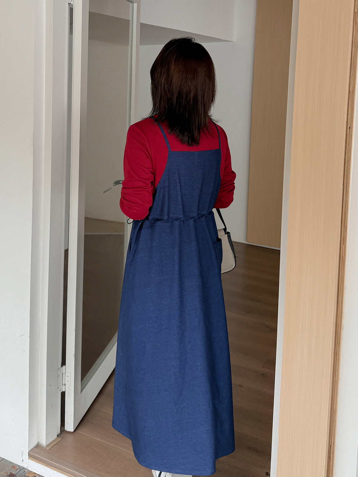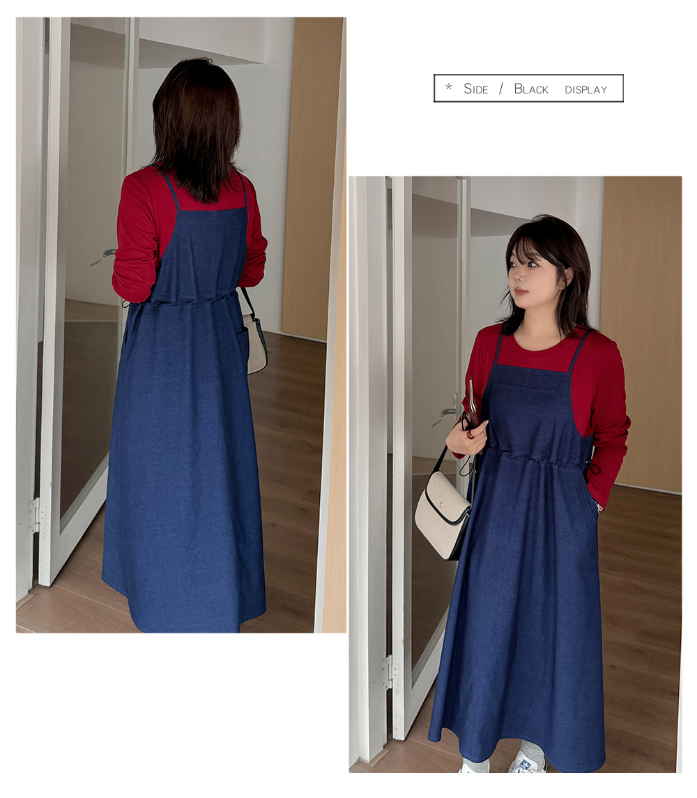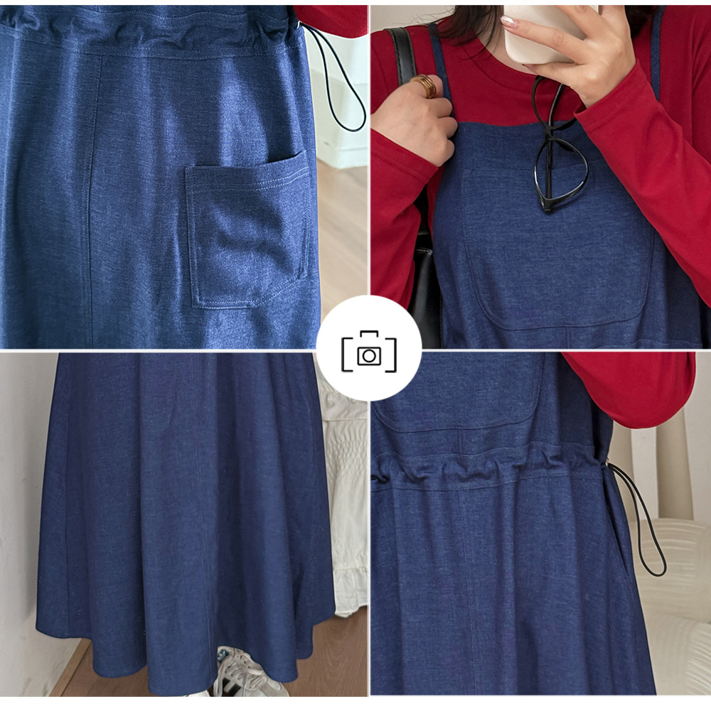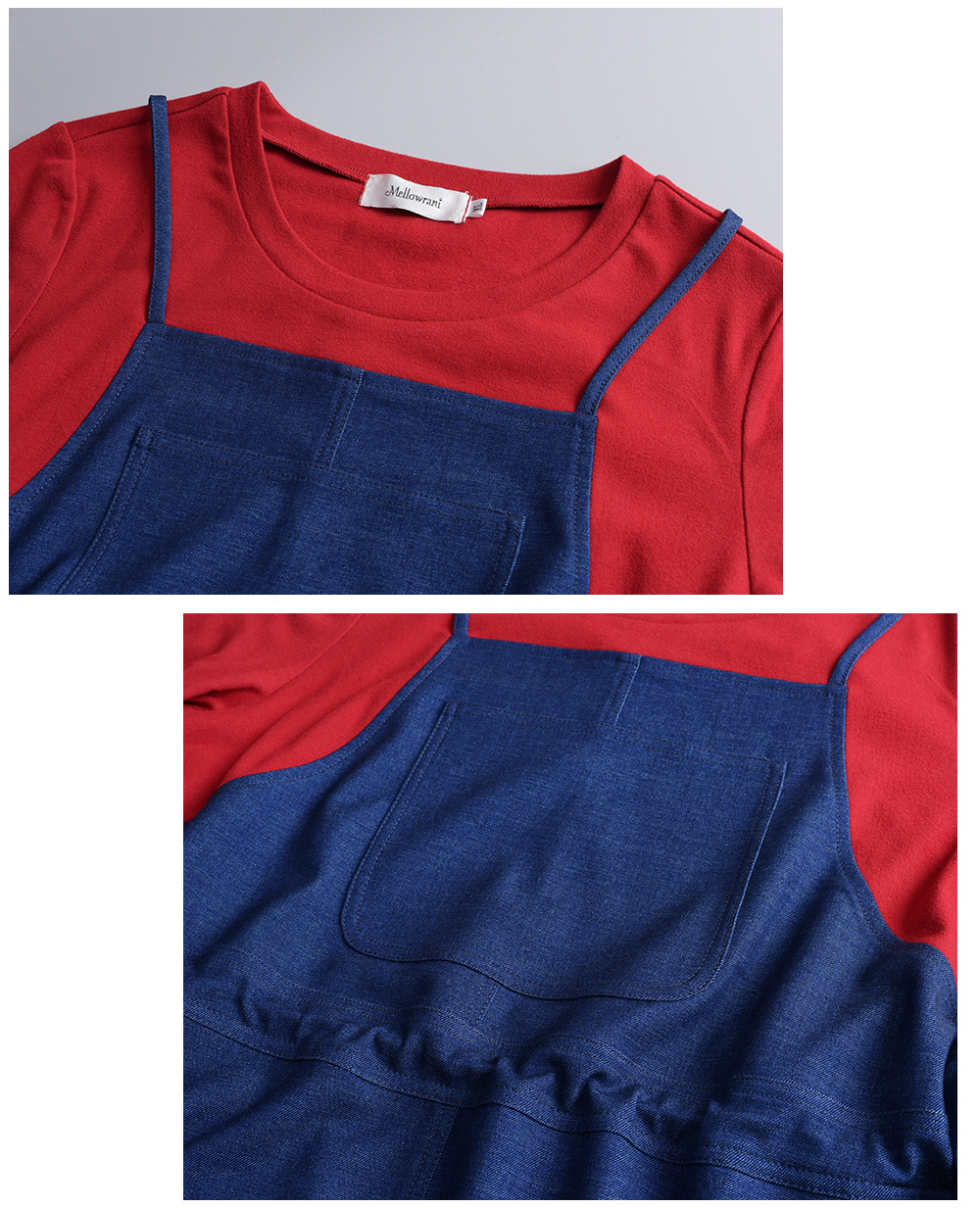 フェイクツーピースワンピースは、柔らかいニット生地+イミテーションデニムで作られています。弾力性、通気性に優れ快適な着心地です。ラウンドネックで、デニムジャンパースカートの胸とお尻部分にポケット付きです。ウエスト部分は、伸縮性調節バックルデザインで調整可能です。年齢を感じさせないカジュアルスタイルで、軽やかで毎日使えるファッショナブルなワンピースを是非お試しください。