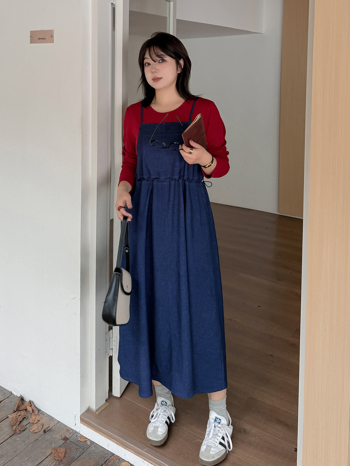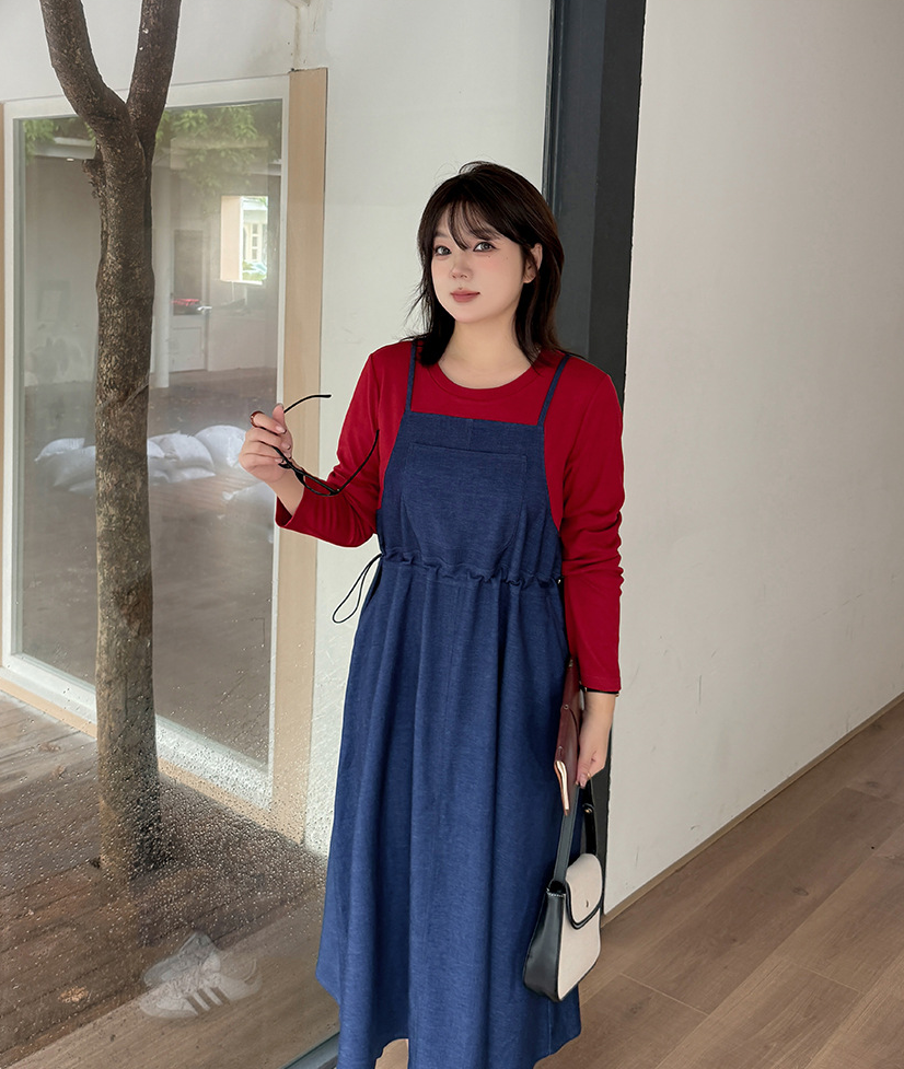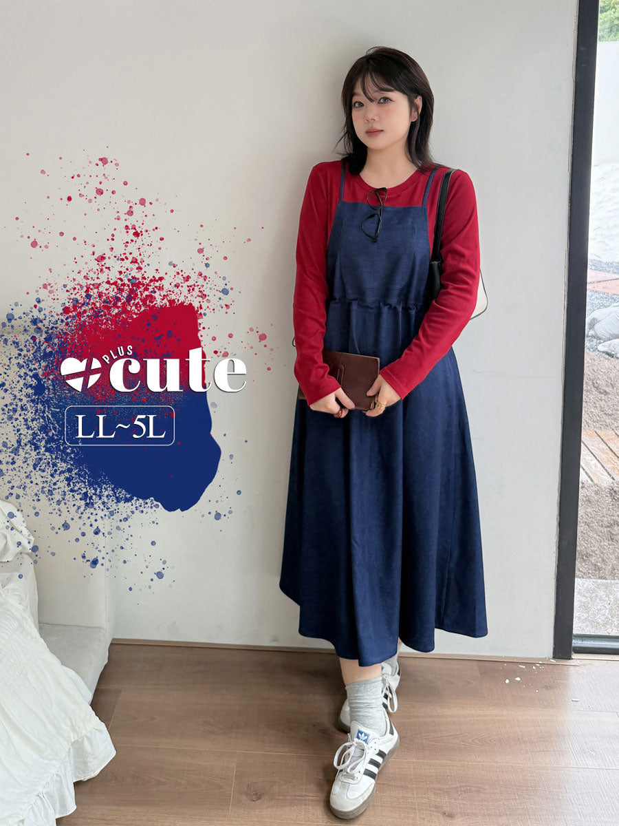 大きいサイズ レディース フェイクツーピースワンピース(ニットインナー+デニムジャンパースカート) LL 3L 4L 5L