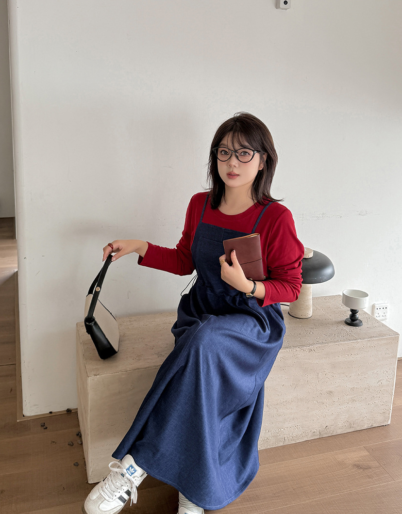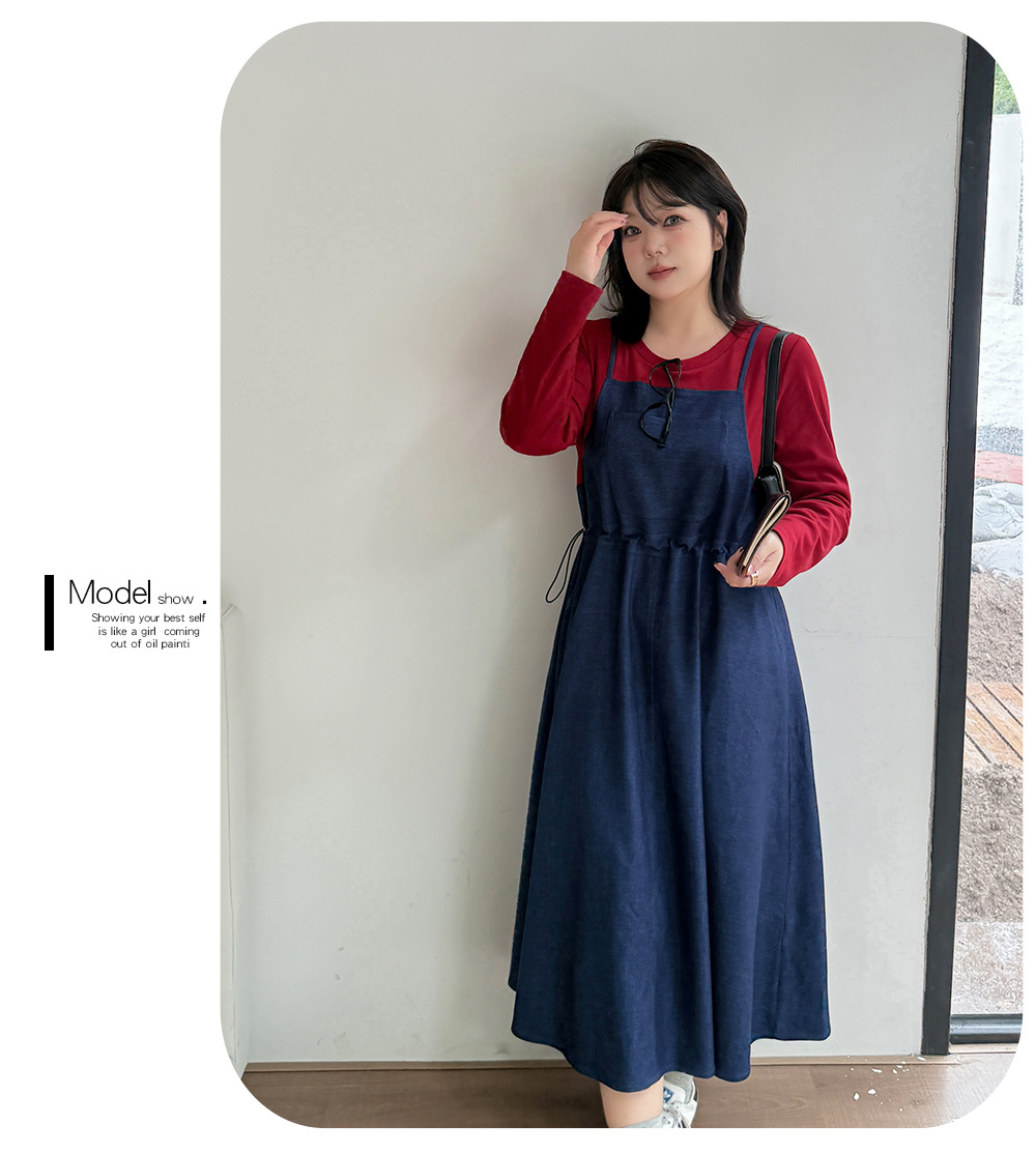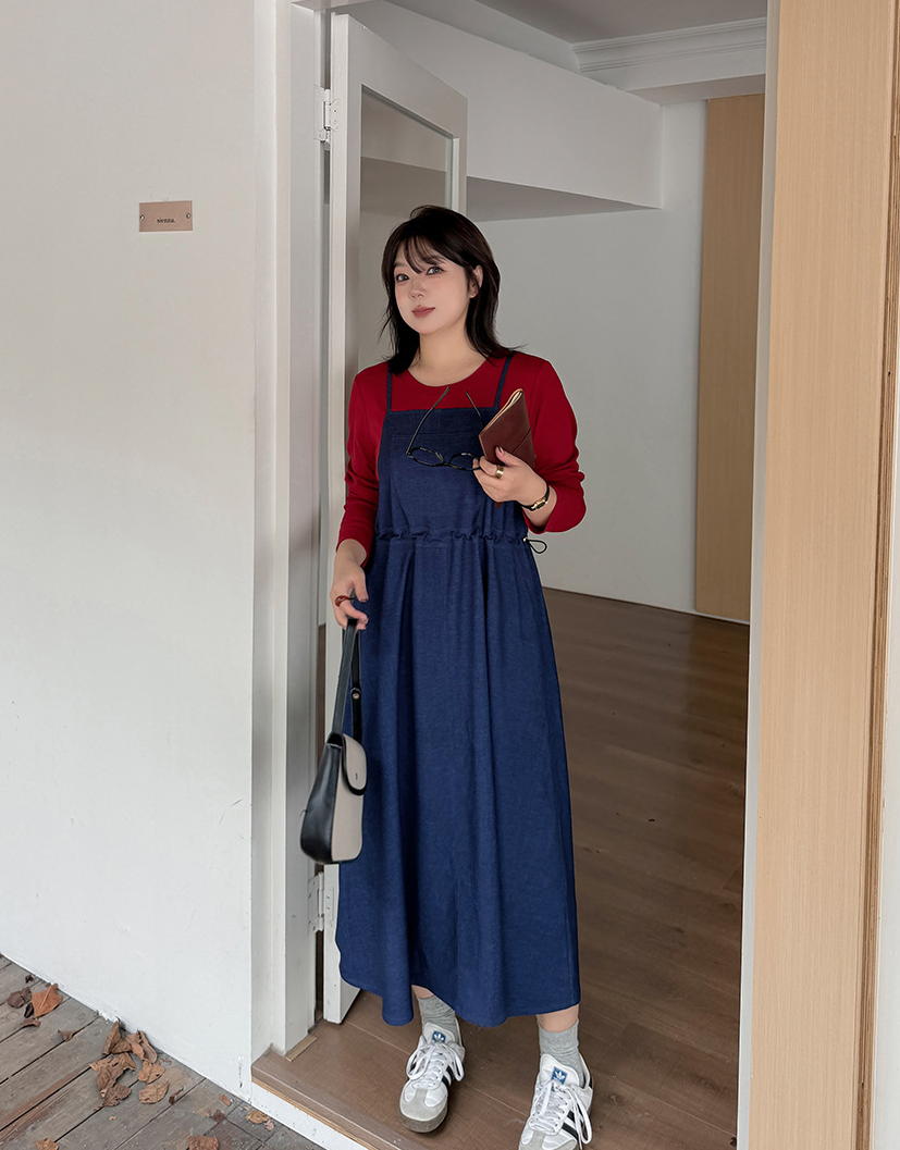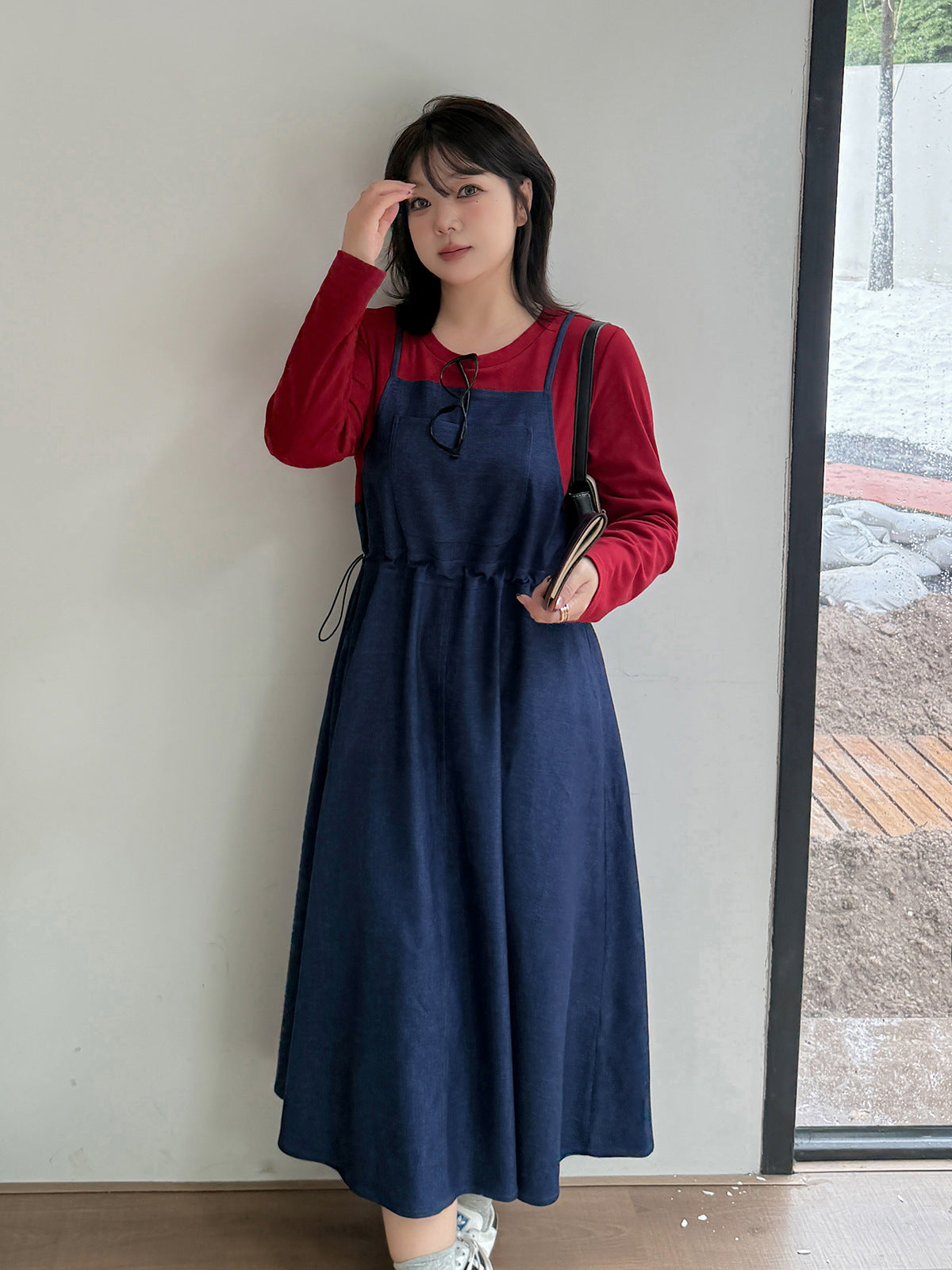 大きいサイズ レディース フェイクツーピースワンピース(ニットインナー+デニムジャンパースカート) LL 3L 4L 5L