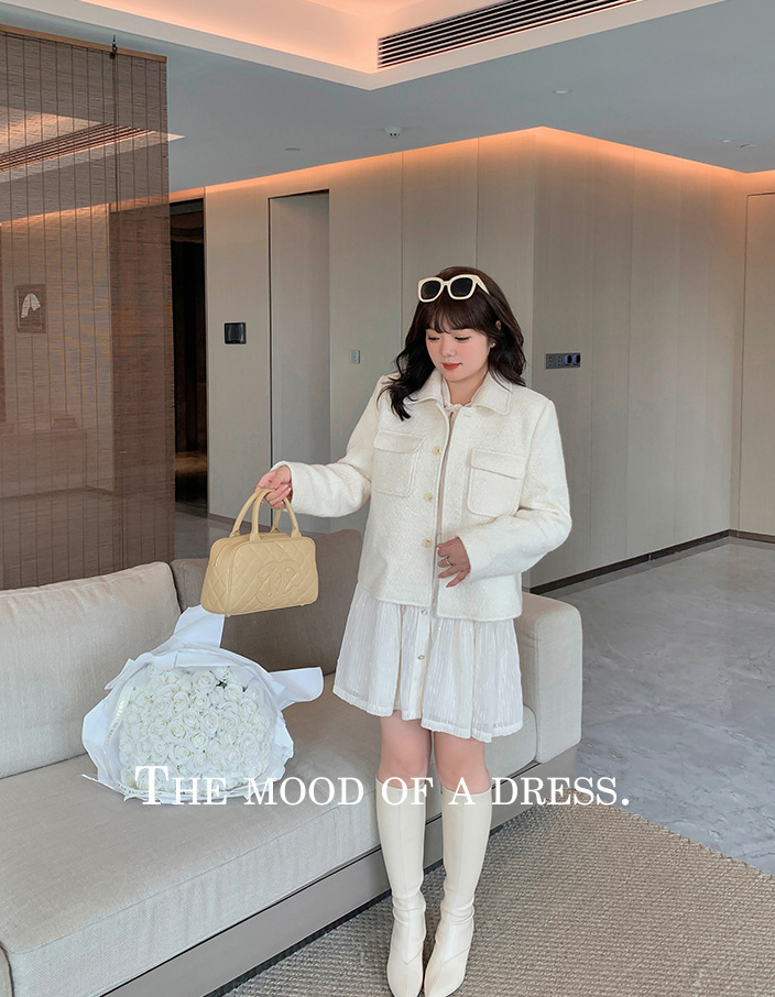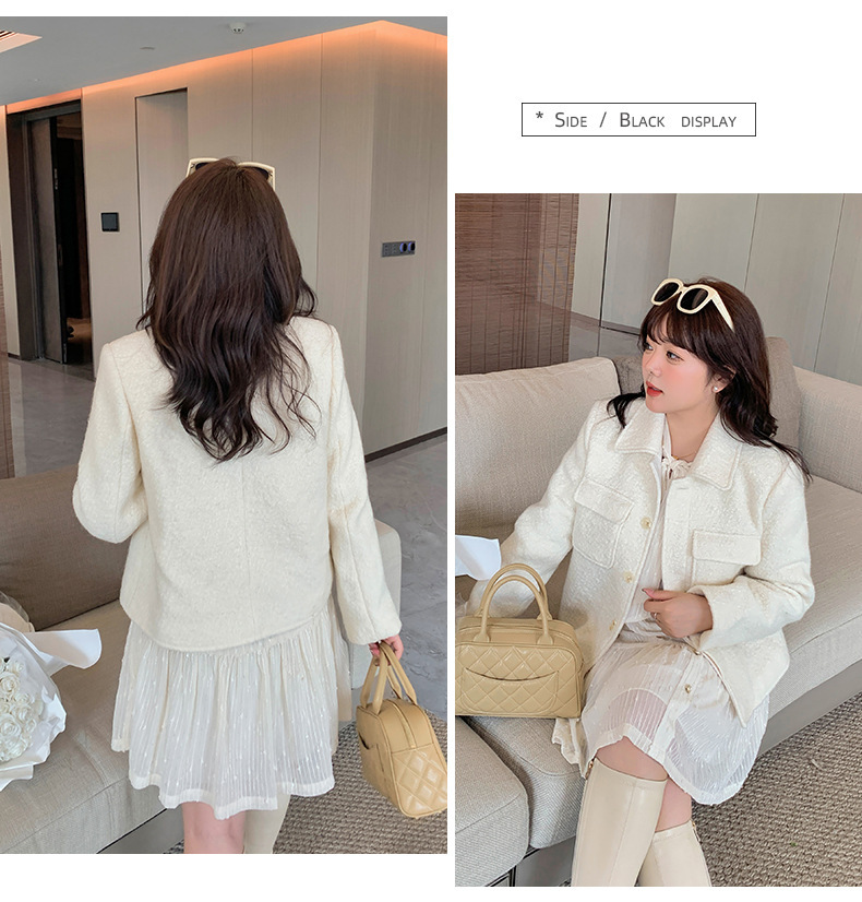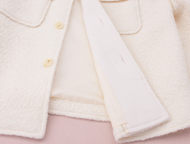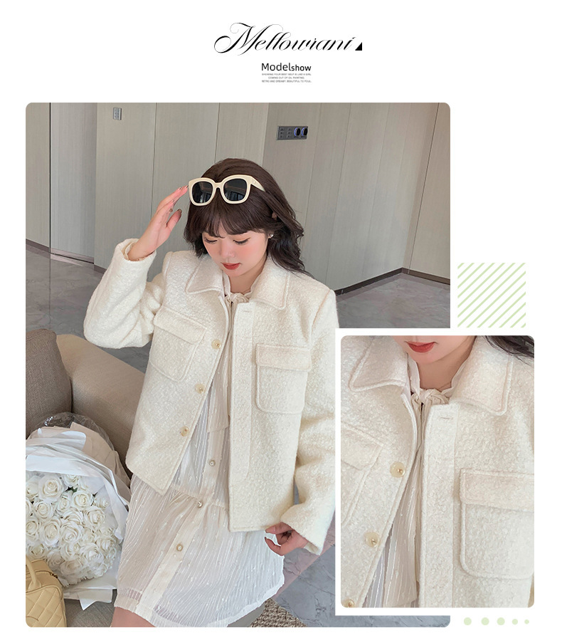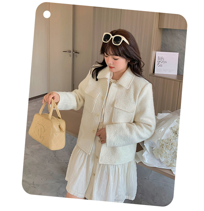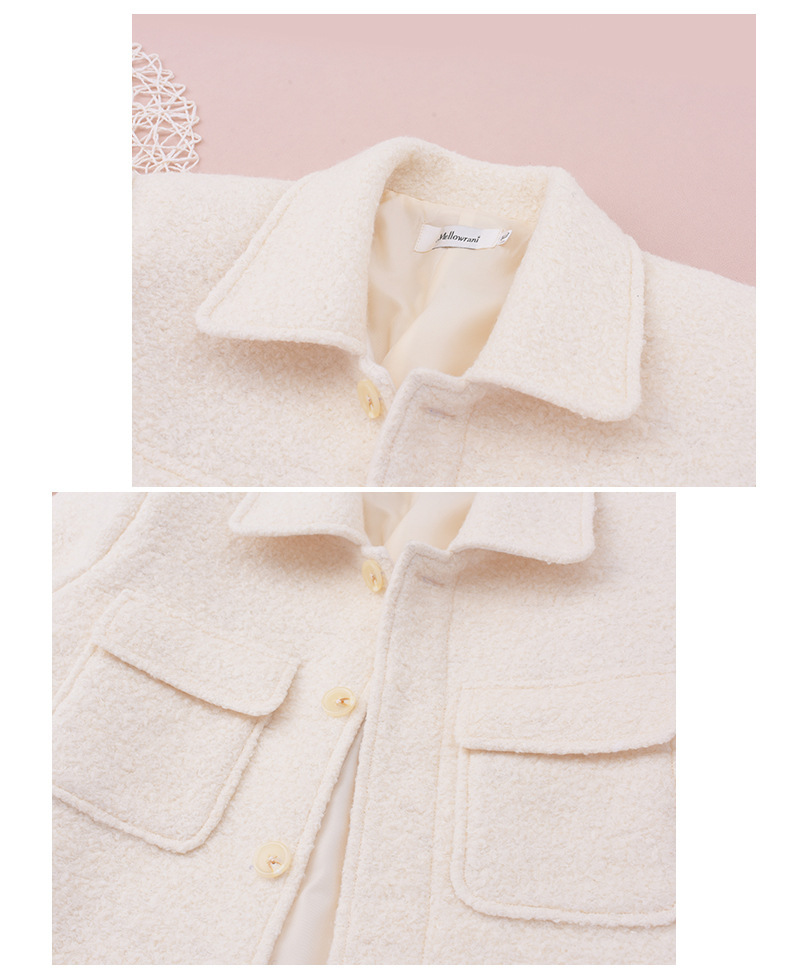 実用性も高く、しっかりとした作りで暖かいショートジャケットです。ブークレ生地が可愛らしく、着心地も抜群です。柔らかく、厚みがあり、暖かさも抜群です。ブークレ感のある特殊な生地を使用しています。すっきりとした小ぶりのラペルと胸元にはポケット付き。ウエストを細く、脚を長く見せるシルエットで、柔らかく羊のような可愛らしい雰囲気を醸し出します。いろいろな場面で合わせやすいアイテムです!