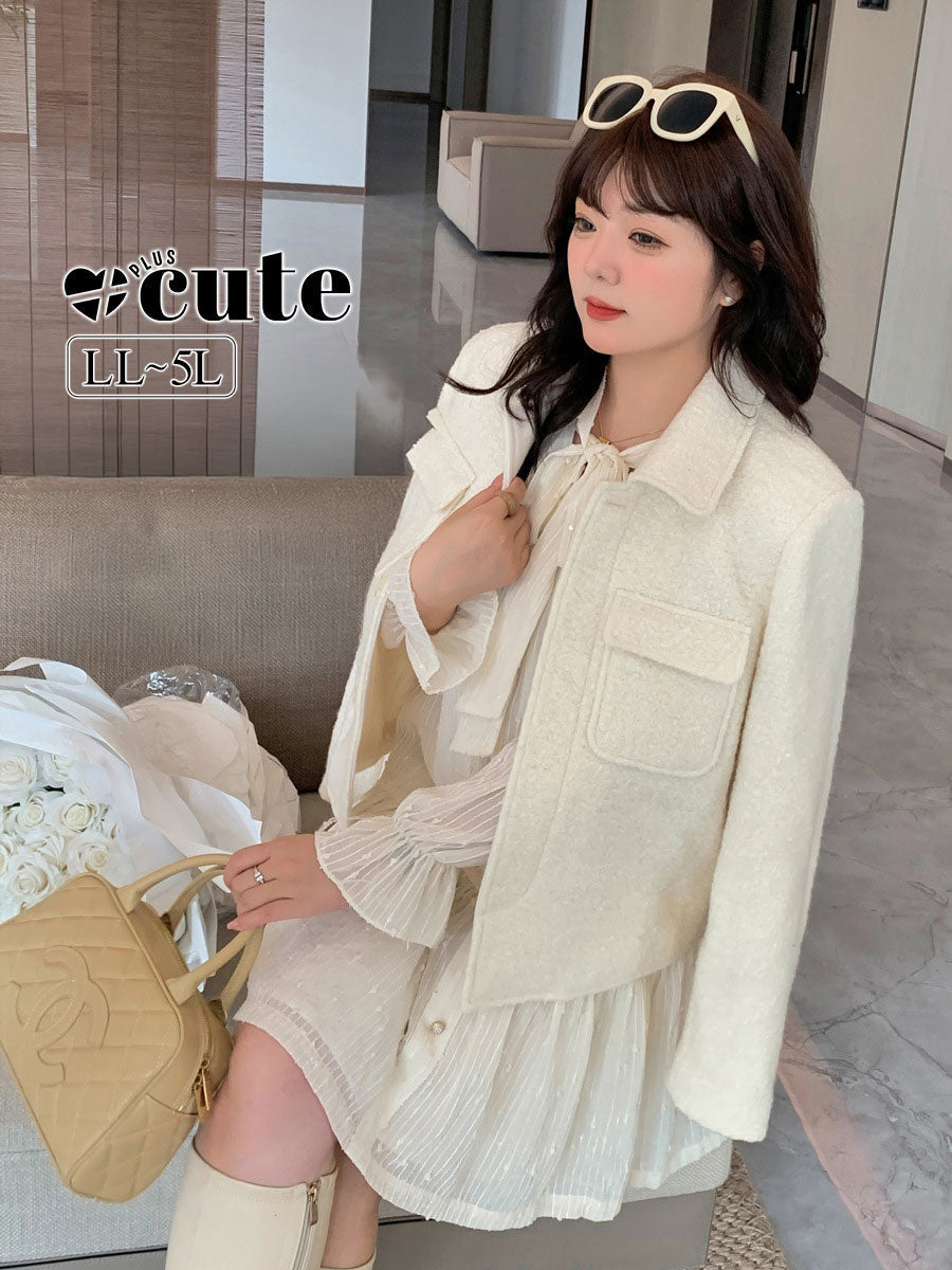 大きいサイズ レディース 厚手ミルキーホワイトショートジャケット LL 3L 4L 5L