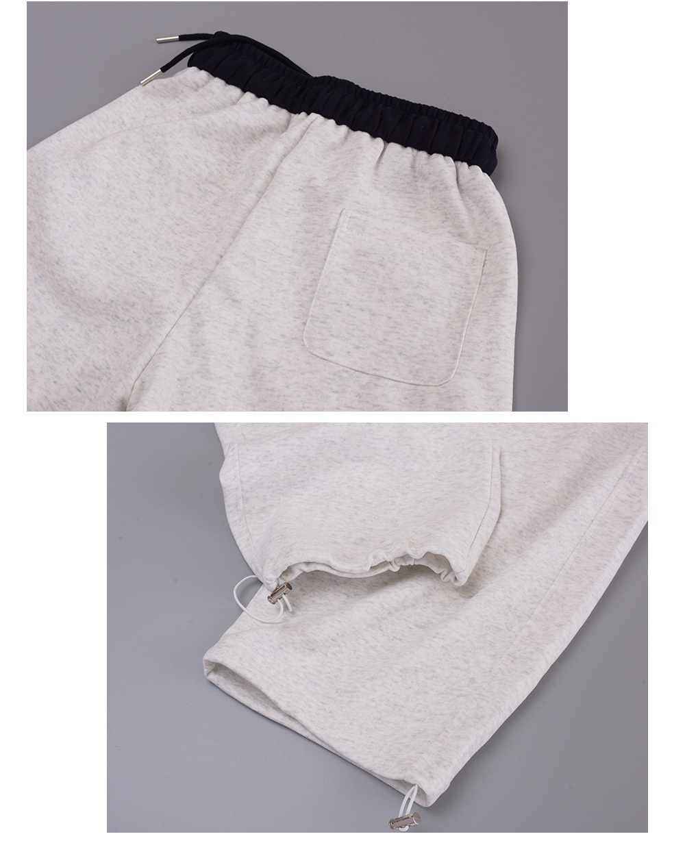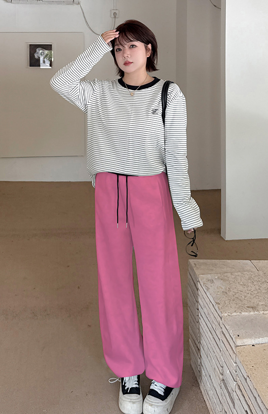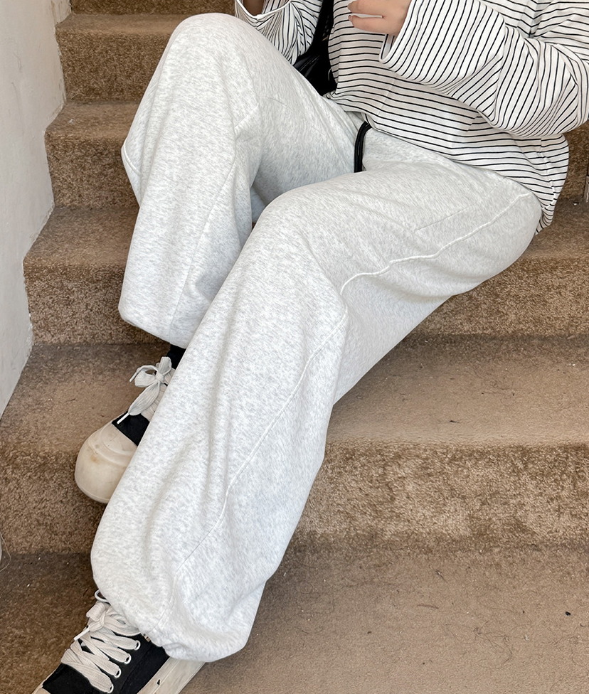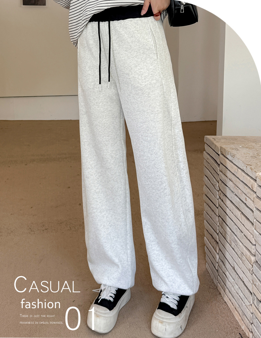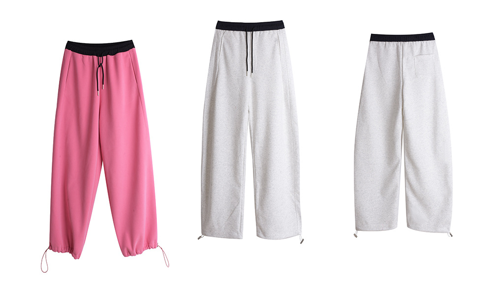 ニットストレートカジュアルパンツは、柔らかく快適なニット複合生地で作られ、厚くてボリュームがあり暖かい履き心地です。ウエスト部分は黒い生地のコントラスのある配色で、メリハリのあるデザインです。フロント、右後ろにポケット、裾に周囲を調節できる伸縮性のあるドローストリングが付いています。脚のラインを美しくカバーしながら、着心地も良く、どんなスタイルにも合わせやすいカジュアルパンツです。