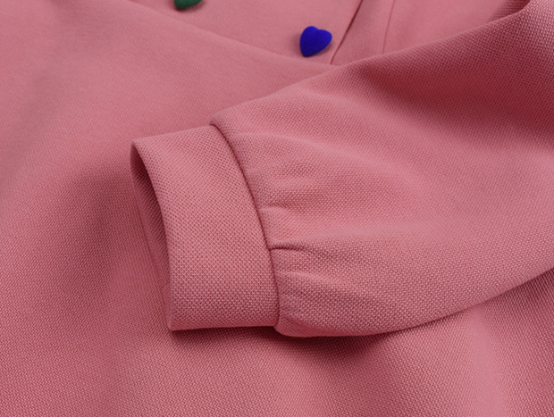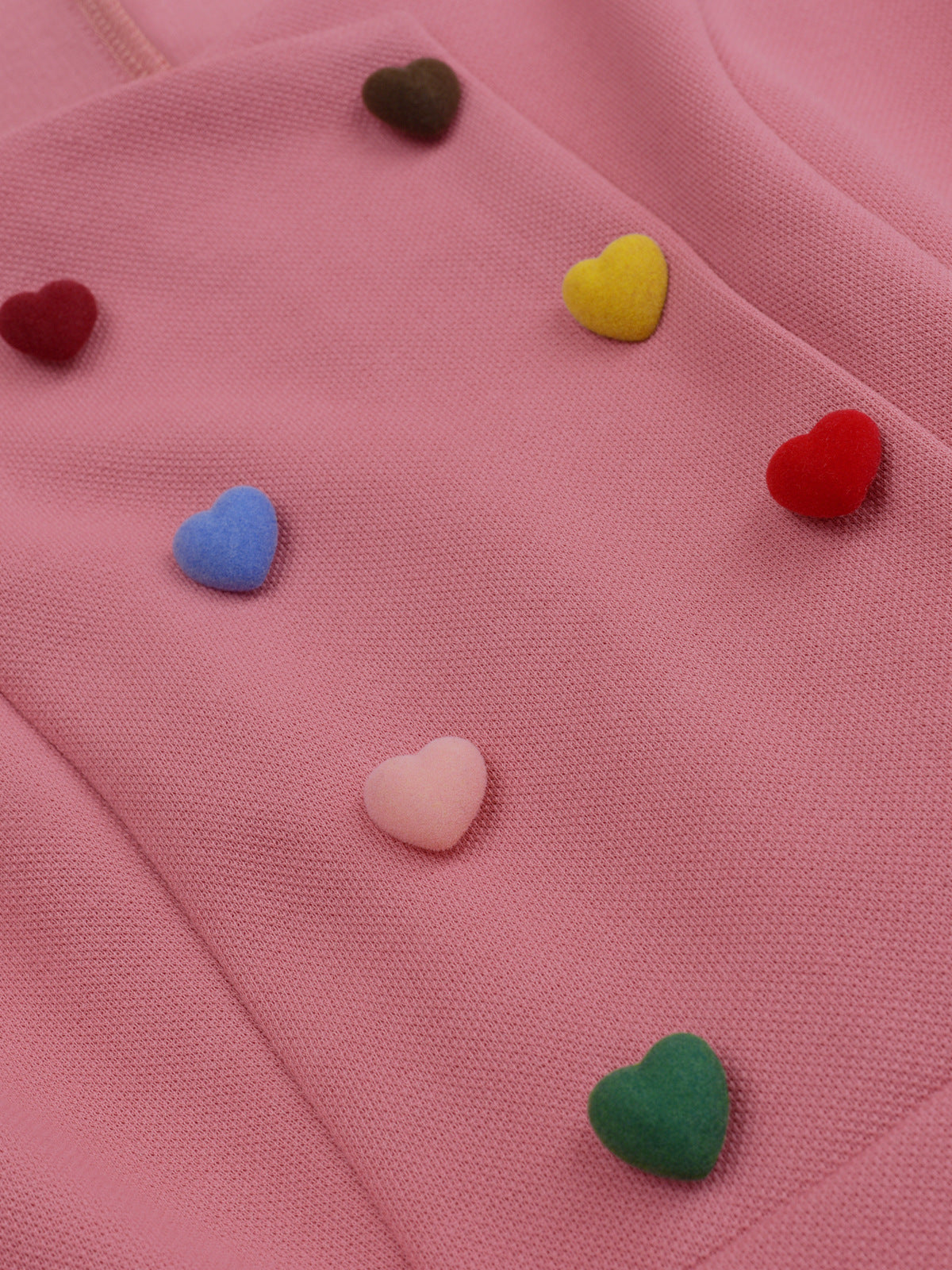 キュートなキャンディカラーのハート型ボタンが2列に並んだスクエアネックのフレンチワンピースです。伸縮性のあるピケコットン生地は、凹凸が少なくマットな質感で、柔らかく通気性に優れています。ウエスト部分は立体的にカットされており、裾が大きく開いているデザインで、ウエストとお腹周りを綺麗にカバーし美しい曲線を描きます。