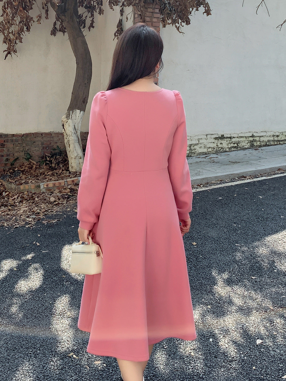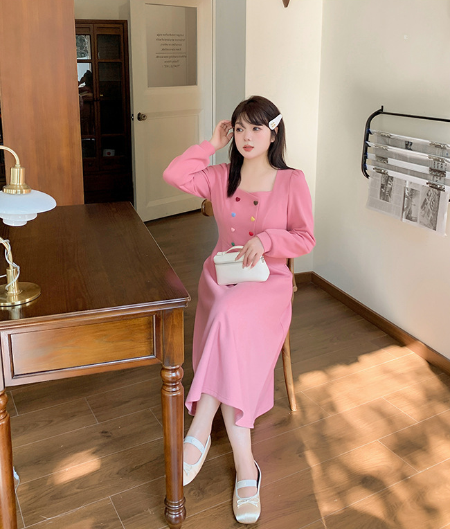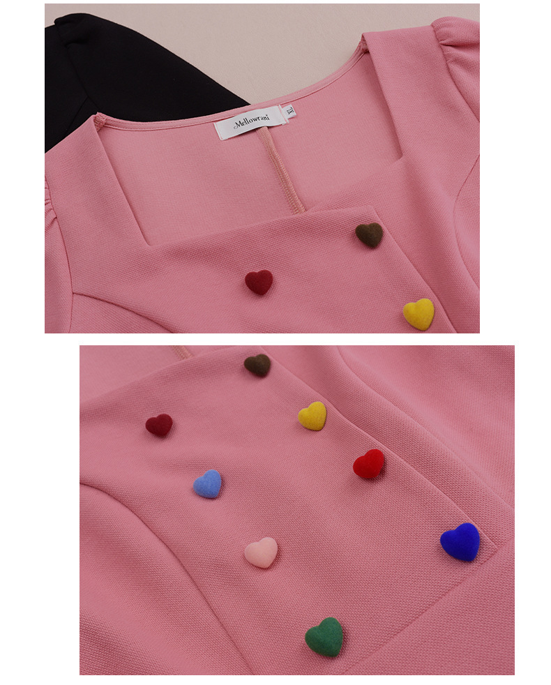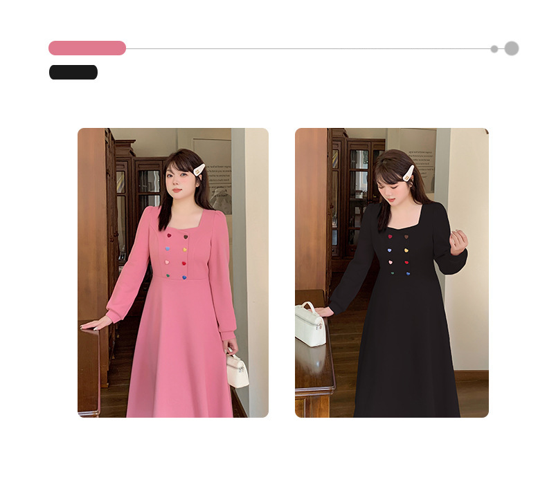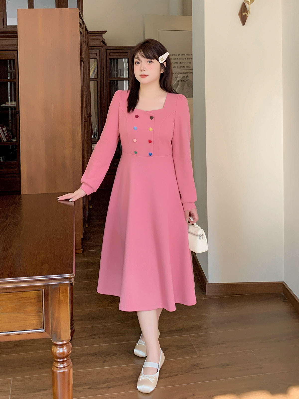 大きいサイズ レディース キャンディーカラーハートボタン付きスクエアネックフレンチワンピース LL 3L 4L 5L
