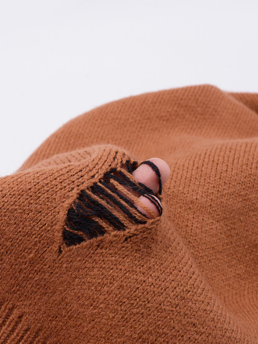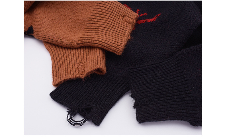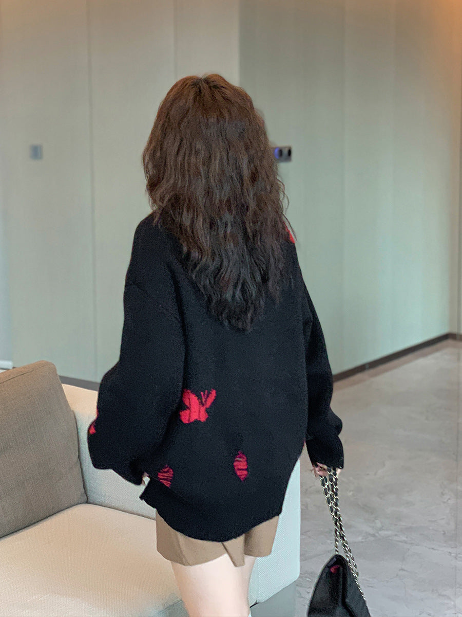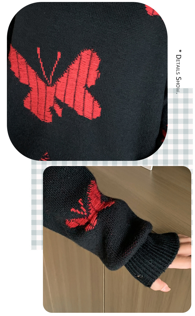 コントラストのあるカラーのビッグバタフライ柄のセーターは、ボディには生き生きとした大きな蝶が織り込まれたデザインです。厚手で柔らかく、非常に伸縮性があります。襟元はラウンドネックで各所に穴が空いている個性的なデザインです。ゆったりとした肩のデザインで着心地のいい暖かいセーターを是非お試しください。