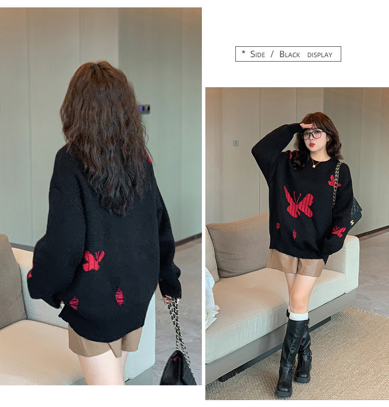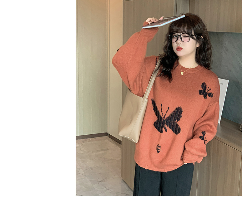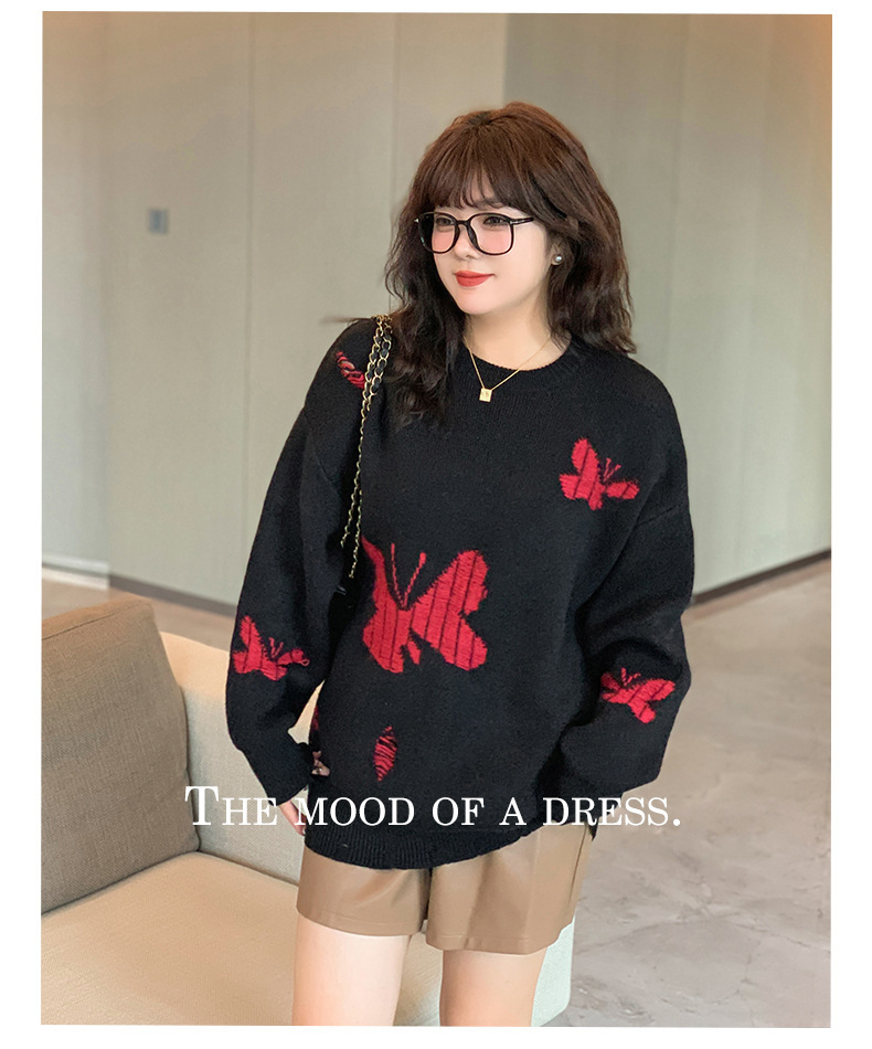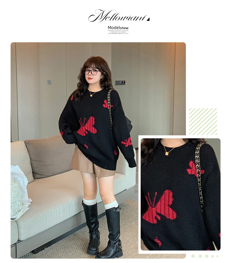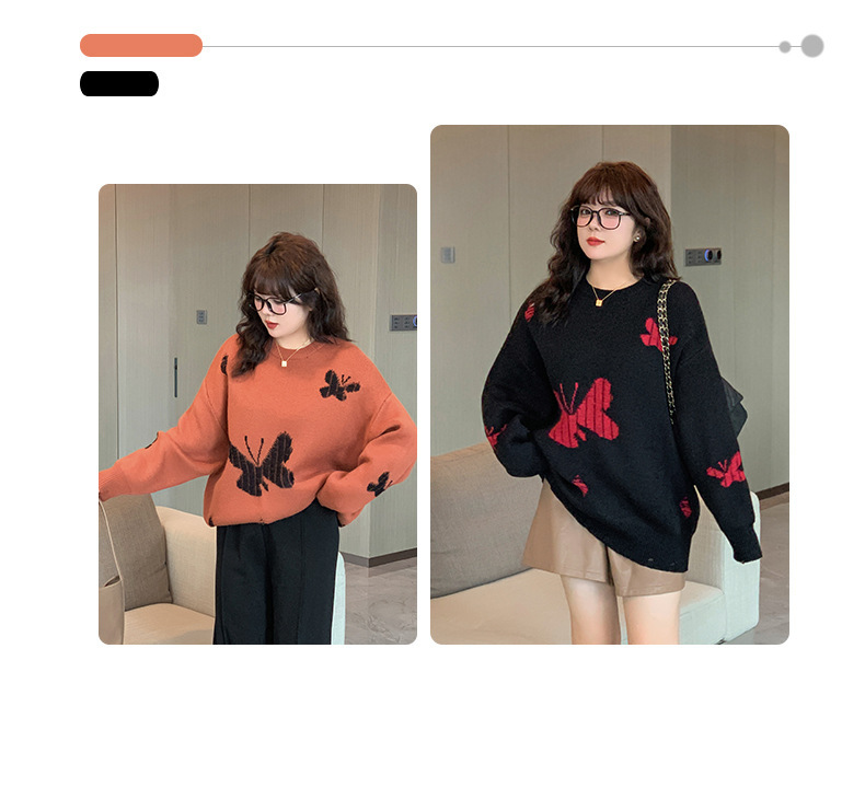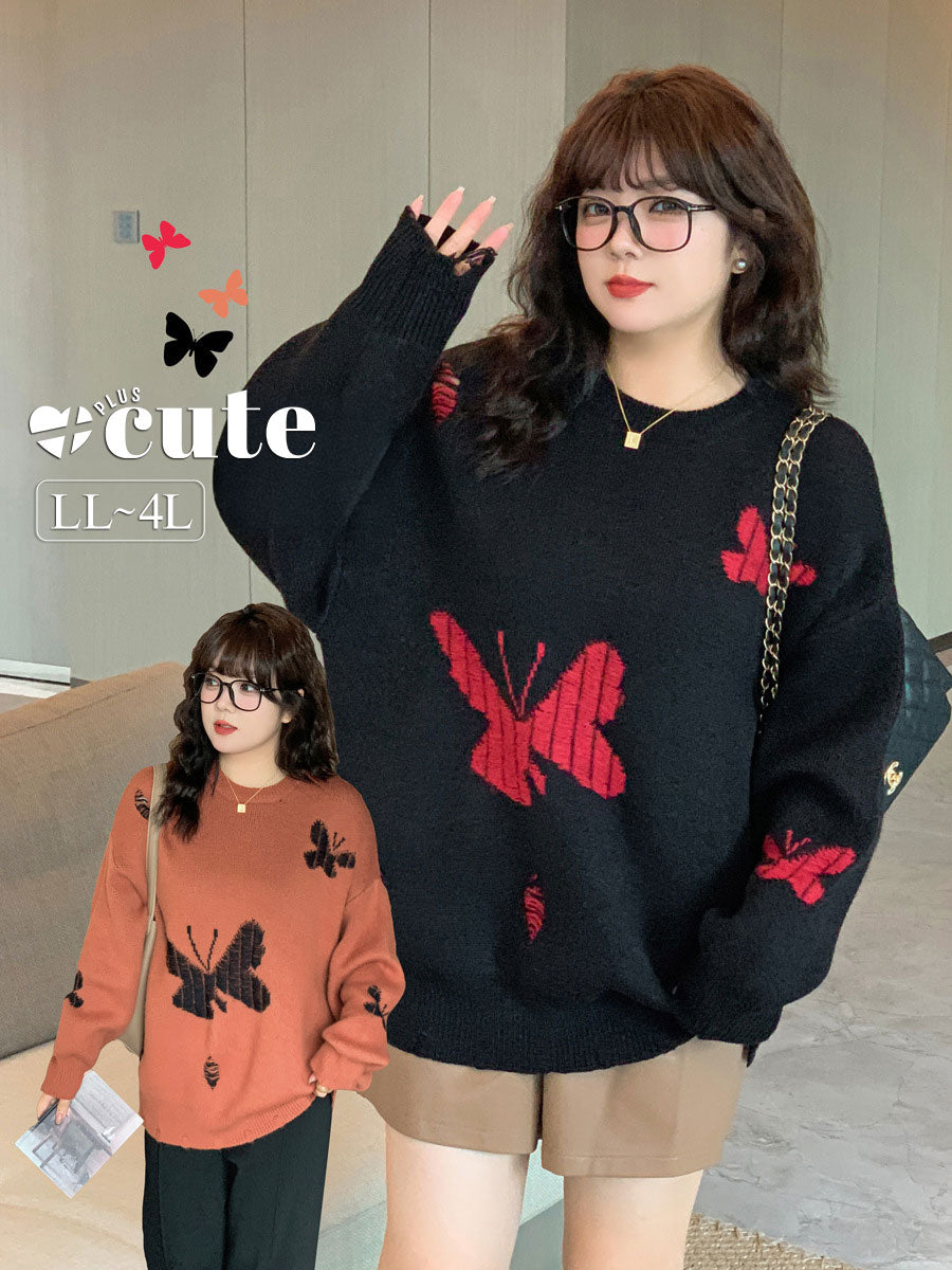 大きいサイズ レディース バタフライ柄コントラストカラーセーター LL 3L 4L