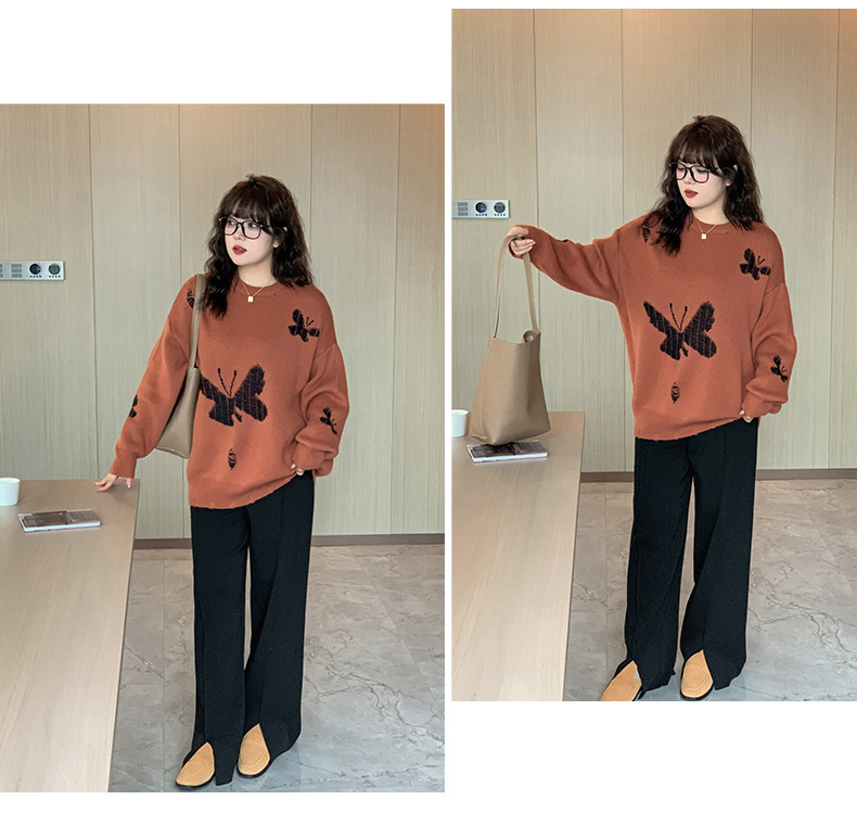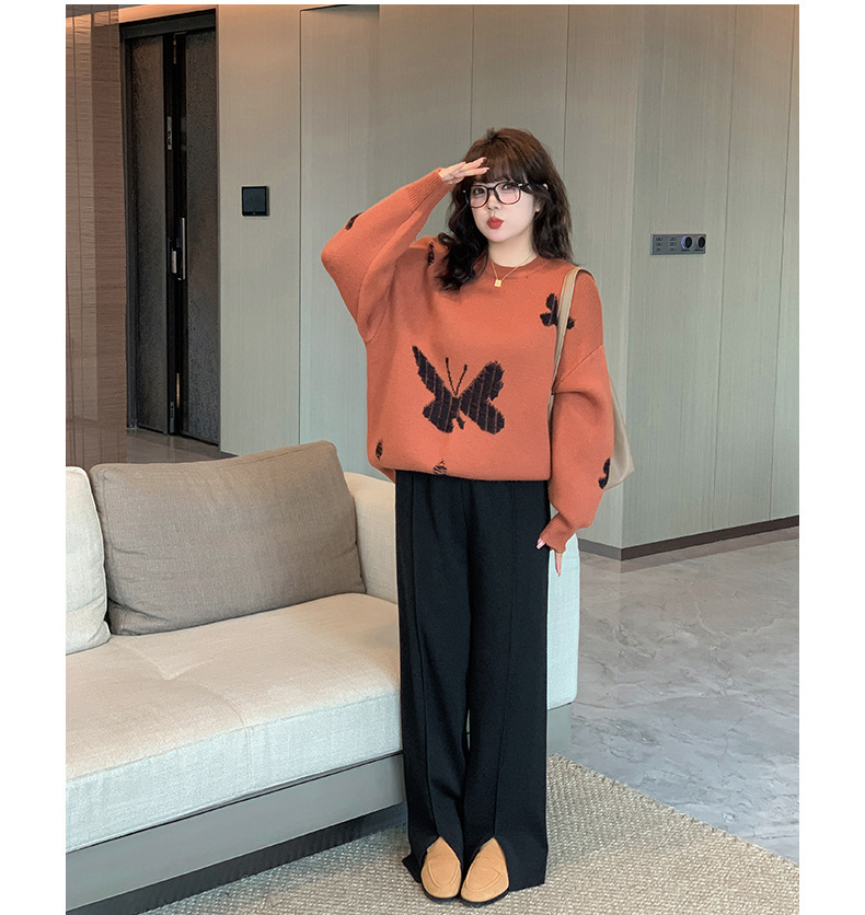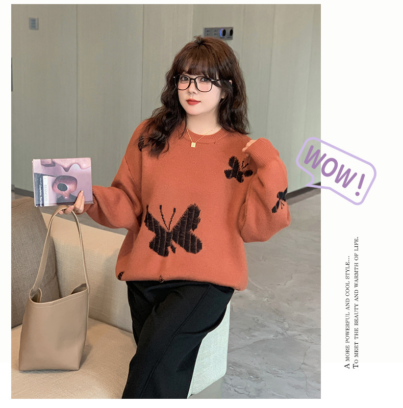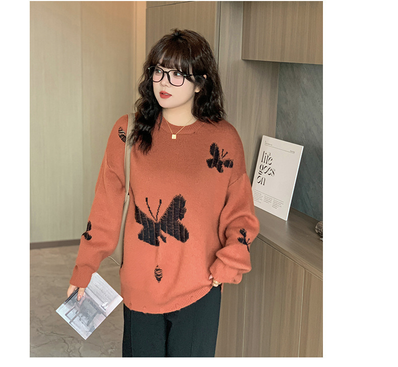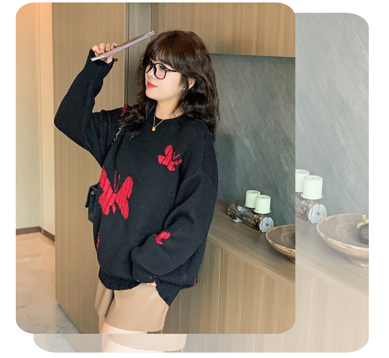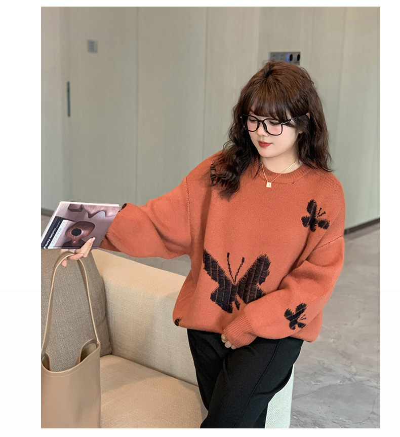 大きいサイズ レディース バタフライ柄コントラストカラーセーター LL 3L 4L