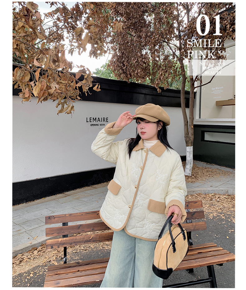 大きいサイズ レディース 刺繍入りキルティングコーデュロイジャケット LL 3L 4L
