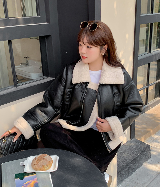 上質な光沢のあるPU複合ポーラーフリースを使用した、ゆったりとしたフィット感のライダースジャケットです。裏地は暖かく柔らかな肌触りで、表地は質感のあるPU生地を使用しています。職人の手仕事による丁寧な仕上がりです。クラシックなスタイルで、体型を美しく見せてくれるスタイルです。ラペルカラーのネックラインにはレザーとメタルの留め具が施され、襟を立て着用できます。サイドにはポケット付き、袖口と裾にはフリース生地が施されています。フロントセンターにはメタルジッパーが付いています。ゆったりとしたドロップショルダーのフィット感は暖かくスタイリッシュで、どんな体型にもマッチします。本物のファーフリージャケットをぜひお試しください!