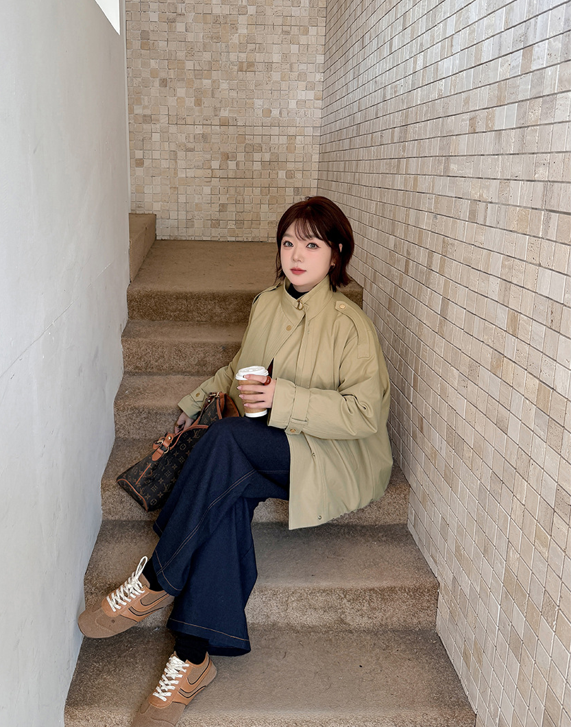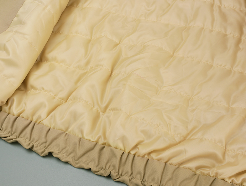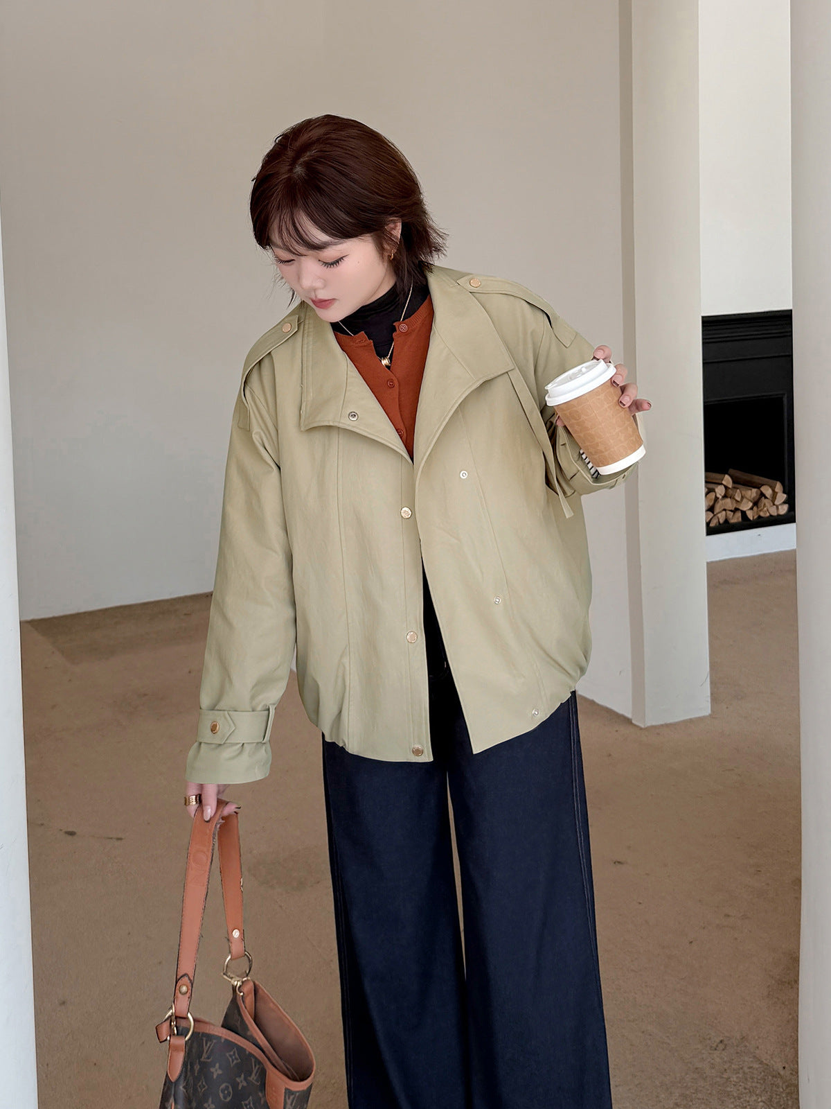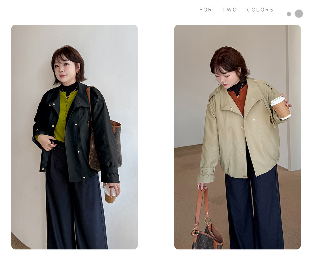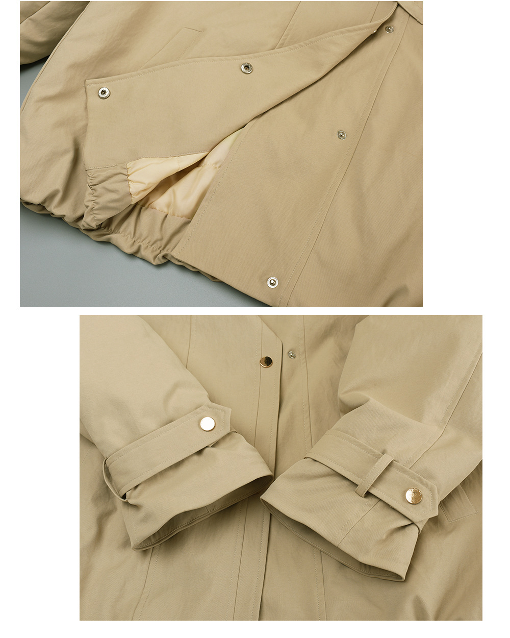 ワークウェアスタイルのカジュアルコットンジャケットは、織りツイル生地+キルティングコットン裏地で作られています。機能的で暖かく、快適な着心地です。折りたたみ可能な小さなスタンドカラーです。襟にはバックルとネックストラップが施され、フロントポケットが2つ、内ポケットが1つ、肩にはボタンタブ、袖口は取り外し可能です。フロントはメタルスナップボタンで着脱も簡単です。実用的でスタイリッシュなジャケットを是非お試しください。