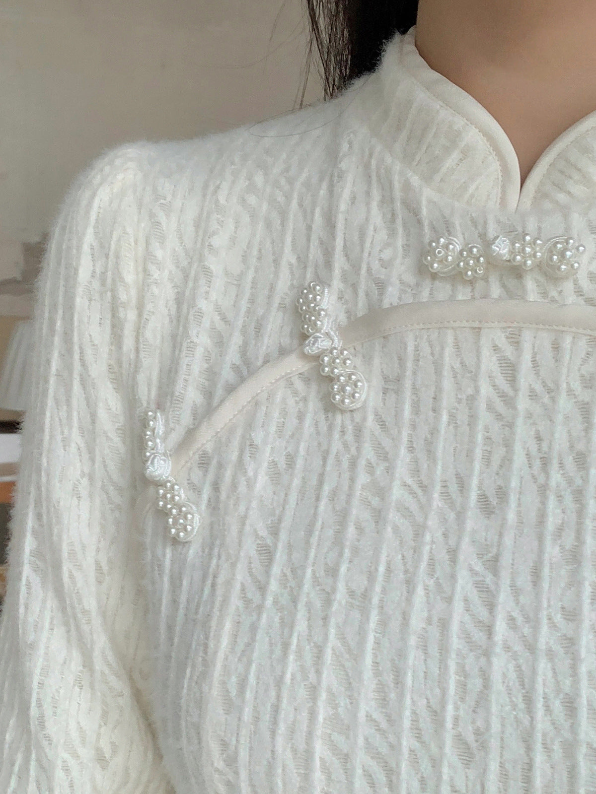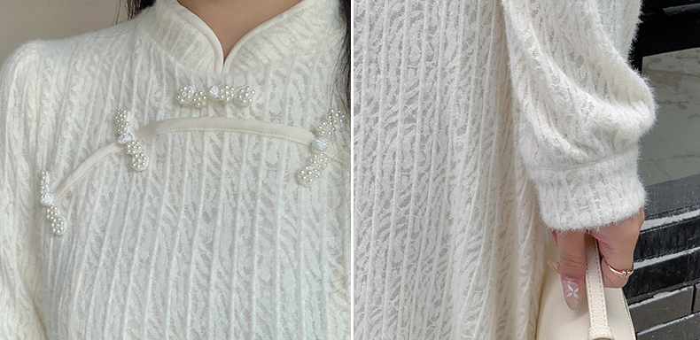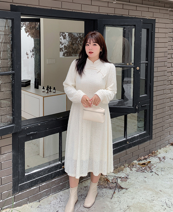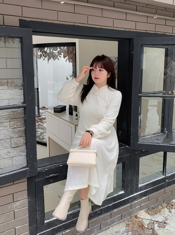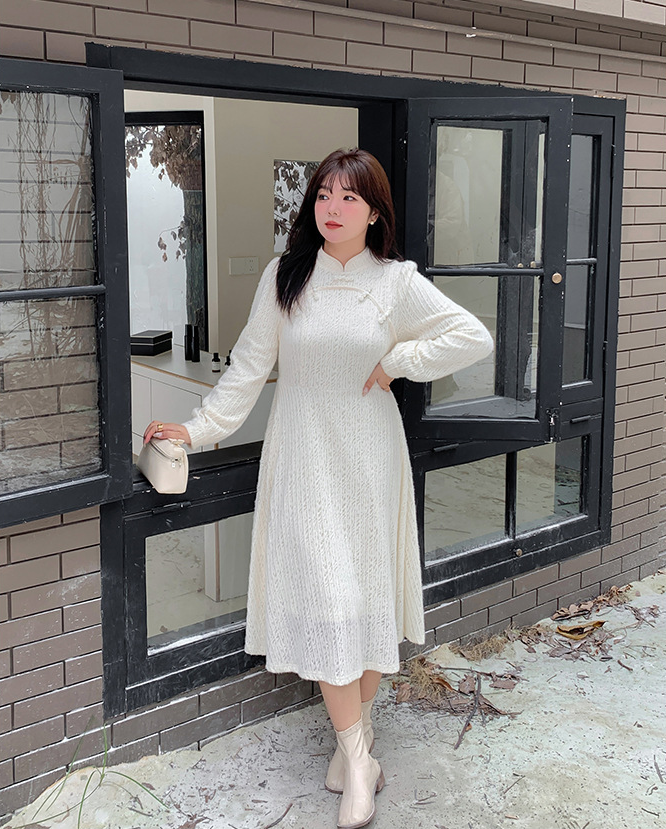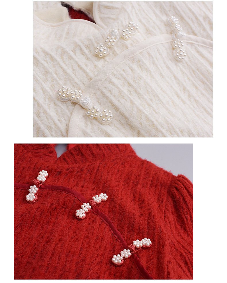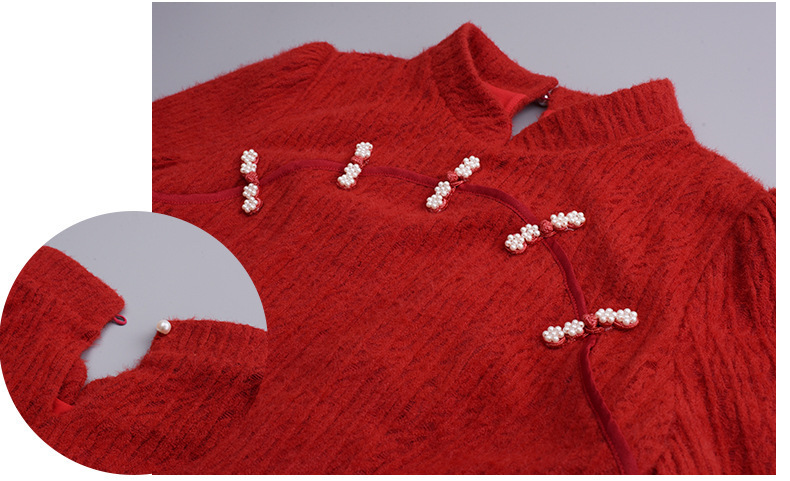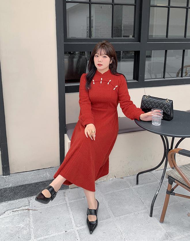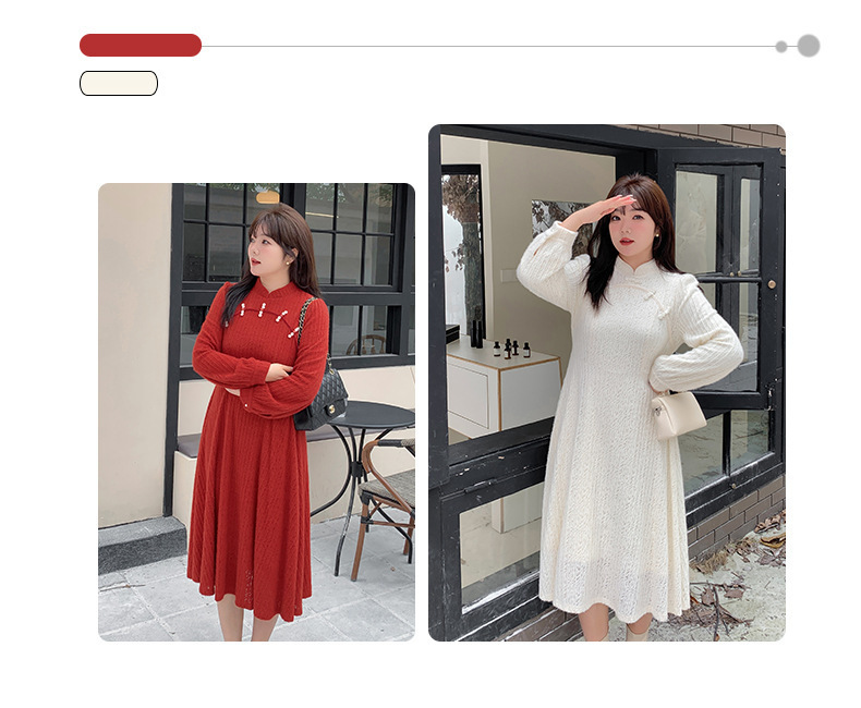 チャイナ風のレトロなレースワンピースは、厚みのある豪華なレース生地で作られており、伸縮性があり、柔らかくしっかりとしています。ボディと袖に薄いフリースの裏地が付いているので、秋と冬の着用に最適です。小さめのスタンドカラーで、後ろに開きがありビーズボタンが付いています。花柄のビーズボタンで飾られた胸元の丸みのあるトリムが、洗練されたエレガントな雰囲気を醸し出します。ボタン付きの袖口、伸縮性のあるウエスト、そしてエレガントで洗練されたフレアスカートのシルエットが目を引く、女性らしいワンピースを是非お試しください。