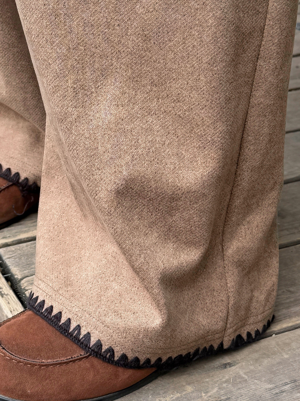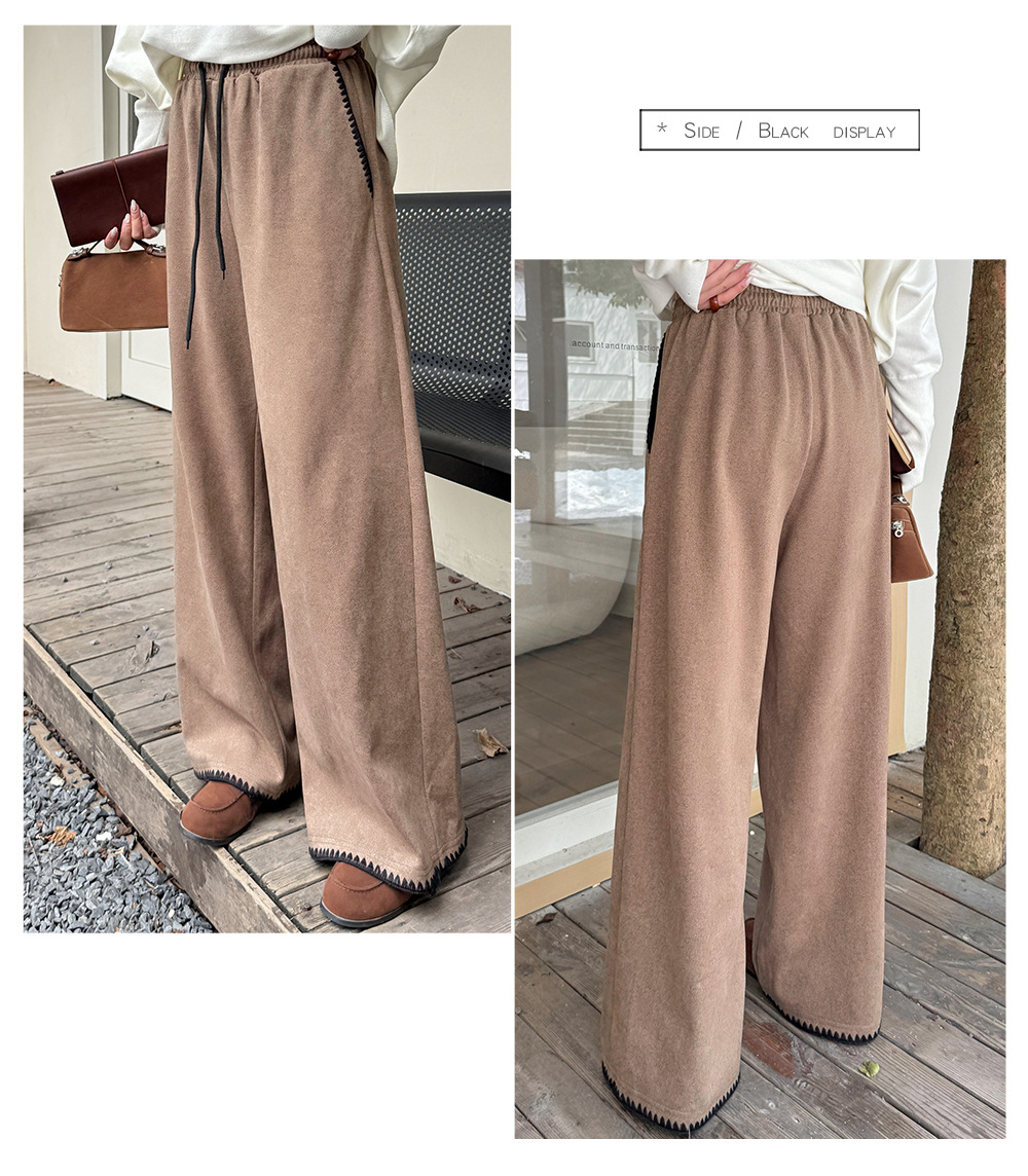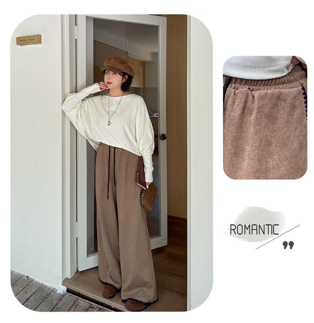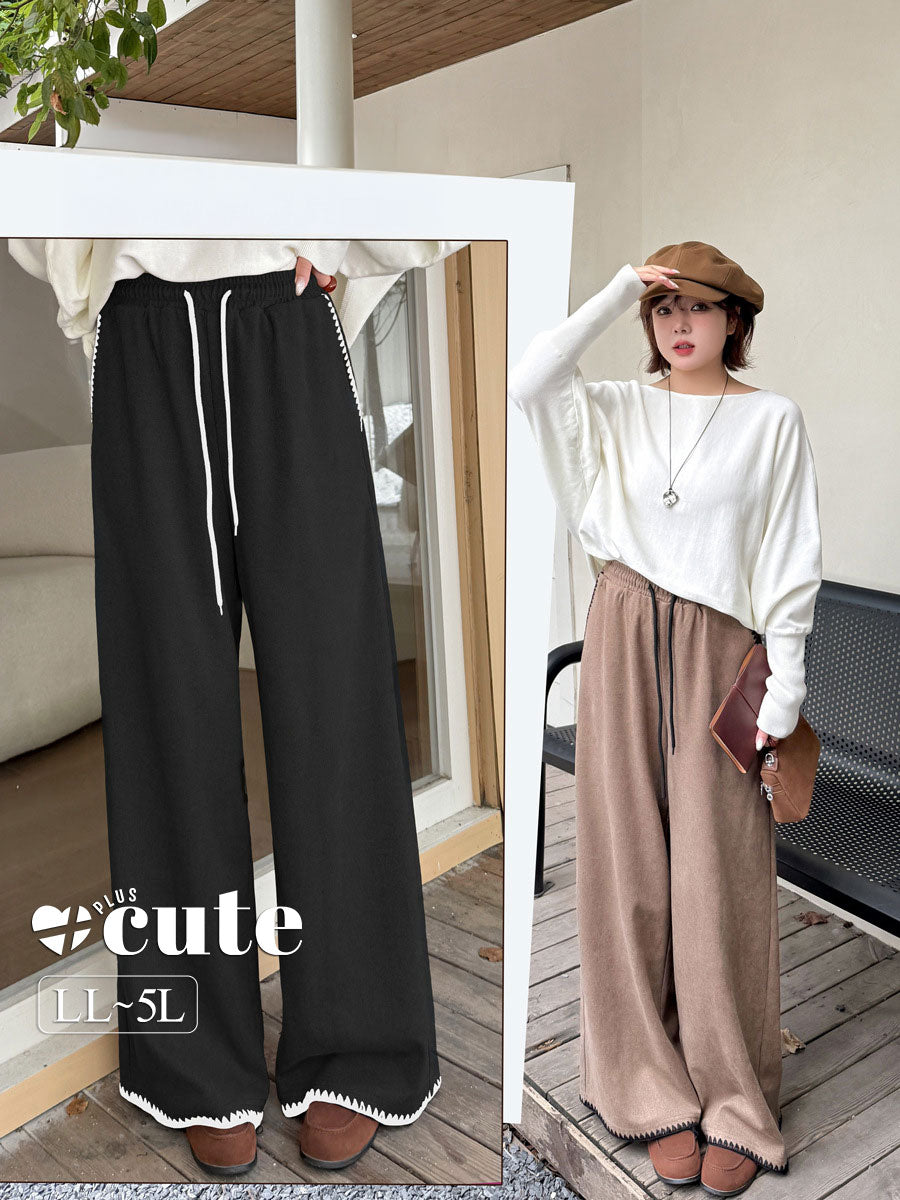 大きいサイズ レディース コントラストステッチウール風ワイドレッグパンツ LL 3L 4L 5L
