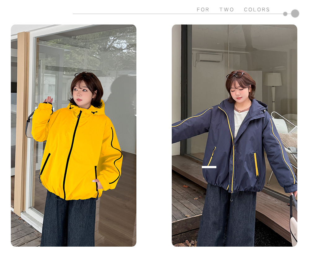 大きいサイズ レディース フード付きバイカラーパイピングカジュアルジャケット 3L 4L 5L