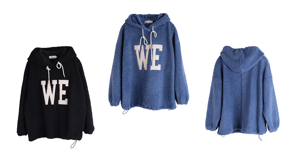 ふわふわプルオーバーフリースパーカー。クライン織り複合超ソフト生地の組み合わせで、外側は粗めのフリース、内側は細めのフリースを使用し、厚手で暖かく、肌触りも快適な着心地です。太めのドローストリングが付いたフード付きデザインです。胸元にはPUアップリケで刺繍が施されており高級感があります。リラックス感のあるゆったりとしたドロップショルダーのフィット感が特徴です。袖口は伸縮性があり、裾には調節可能なバックルが付いています。実用的な冬の必需品としてご活用ください!